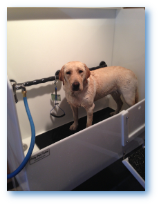 - Regardless of the service you choose, we will assist you in getting you and your dog situated in our tubs for an easy and safe experience. We will lead your dog up the ramp into the tub, secure your dog in the tub, provide you with an apron to keep you dry, show you how to use our Bath Master Bathing System, and answer any questions you have before or during grooming.